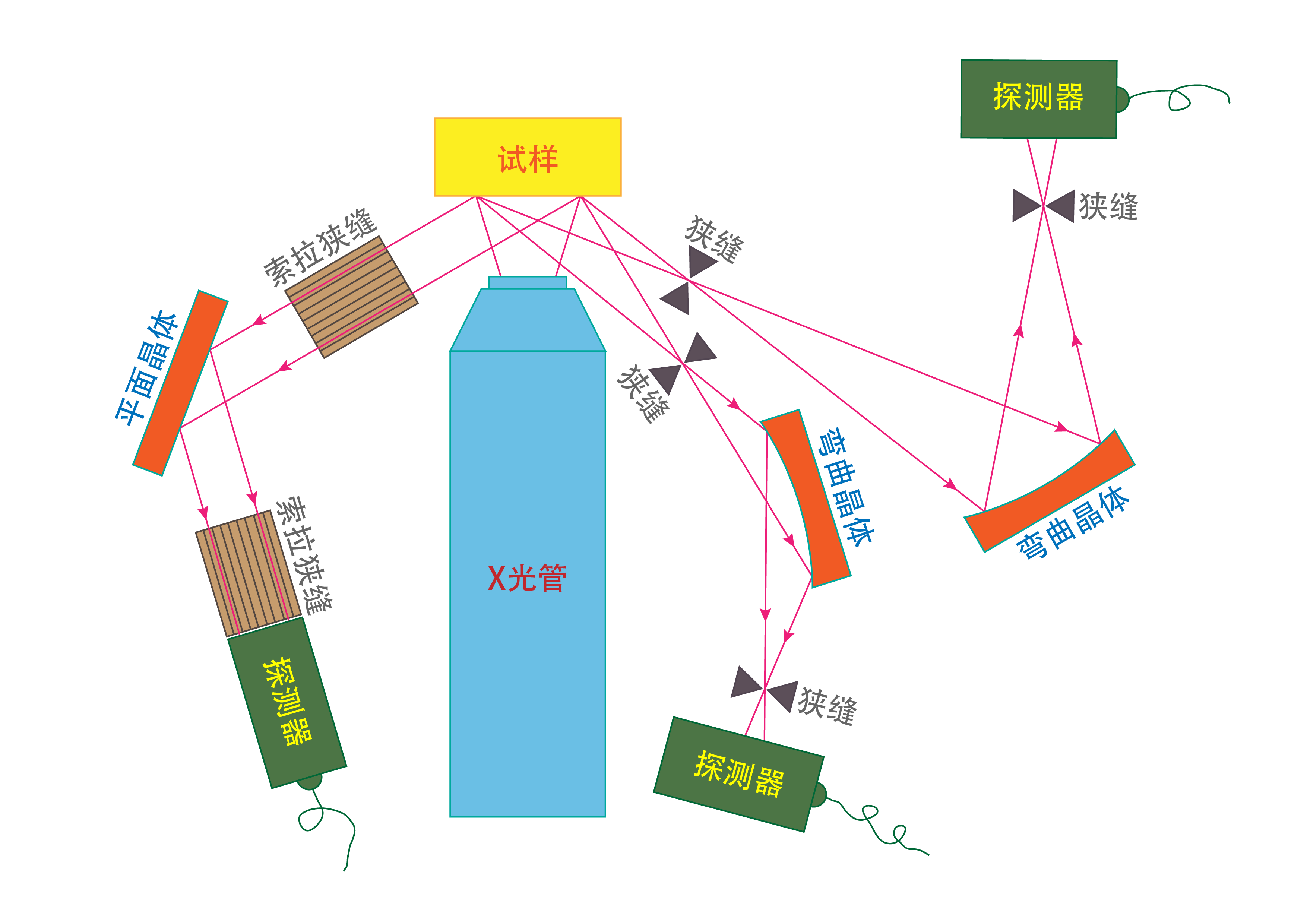 其意思如下圖所示2如圖所示。X放射性元素管平行安裝,外源性往上照射樣本,允許也可以使兩者左右的連續盡也可以的近,所以做到最多提起效應。樣本收回X放射性元素管所撤回X電子束的閃耀將突發XX射線熒光,其將打開分光室暫停分光。有一種稀有元素相匹配1個分光室。XX射線熒光經狹縫(倘如若分光晶狀體用的是彎晶)或索拉狹縫(倘如若分光晶狀體用的是平晶)射向分光晶狀體,經晶狀體分光后知足衍射依據布拉格方程組的相匹配的該因素的顯著特點Xx射線熒光再經狹縫或索拉狹縫射向觀測器。經觀測器觀測并經前加的網絡電纜線計數器后將刷出該化學元素優勢X光譜線熒光的承載力,再經調校式子較真收獲設計元素的酸度。